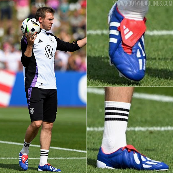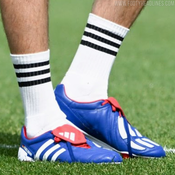 Update: Confirming our leak, coach Julian Nagelsmann was spotted wearing the Predator Mania 'Japan Blue' remake boots, suggesting that Adidas will be re-releasing them soon.