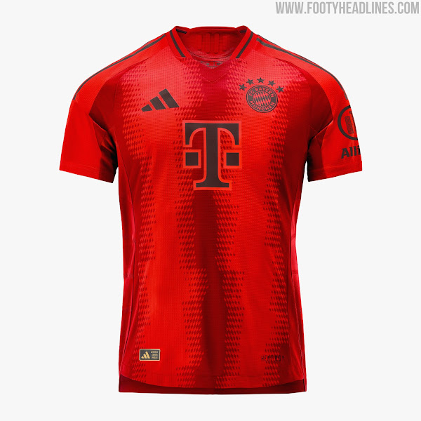 The Bayern 2024-2025 home kit "features three different shades of red to capture the identity, emotion, and drama of the game" and as a homage to the club's trebles won in its history.