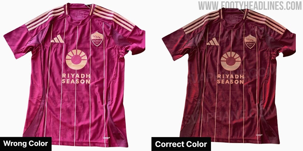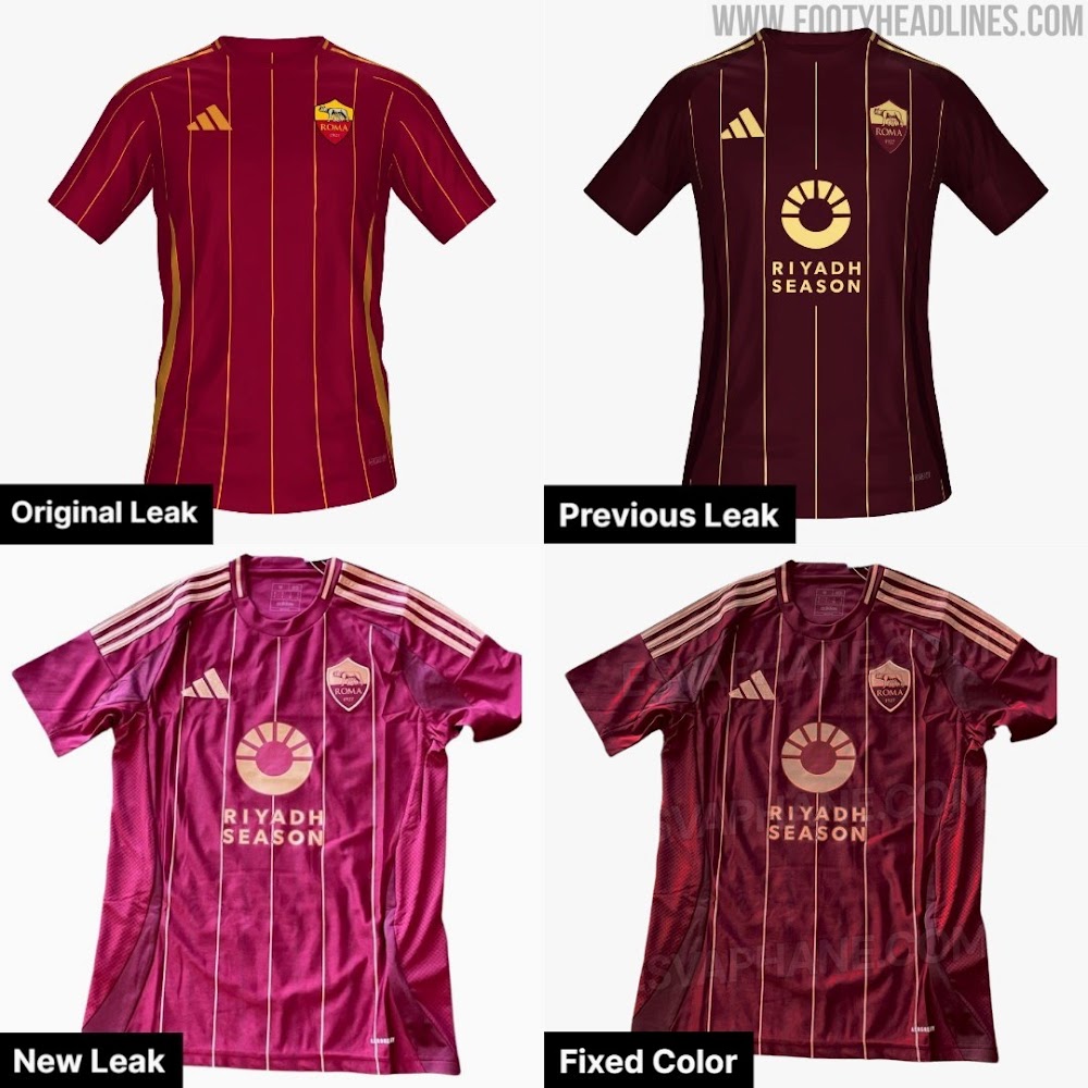 The Roma 24-25 home kit is a different shade of red to the three previously leaked versions.