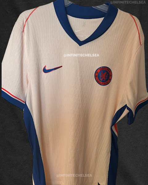 Update: A new picture of the Nike Chelsea 24-25 away kit has been leaked by @infinitechels. The kit is mainly colored 'Guava Ice', combined with "Team Orange" and "Rush Blue".