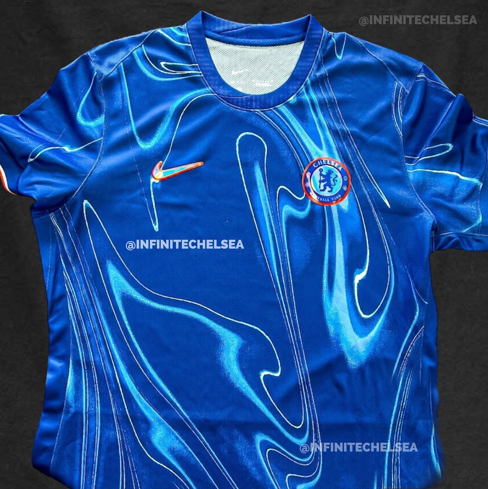 Update: The Chelsea 24-25 home kit is an outstanding one, and now a picture that greatly shows off the idea of the design was leaked. The 3D logos match the wavy design, creating an overall spectacular look.