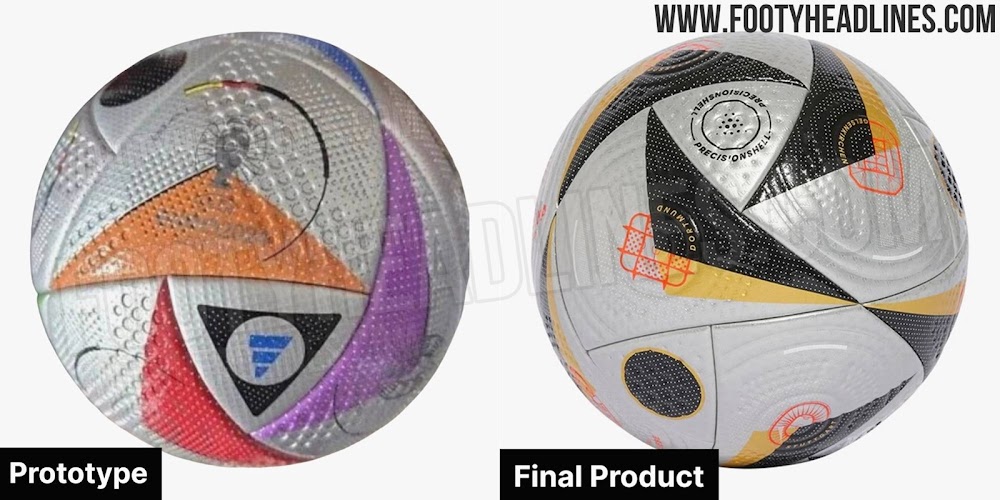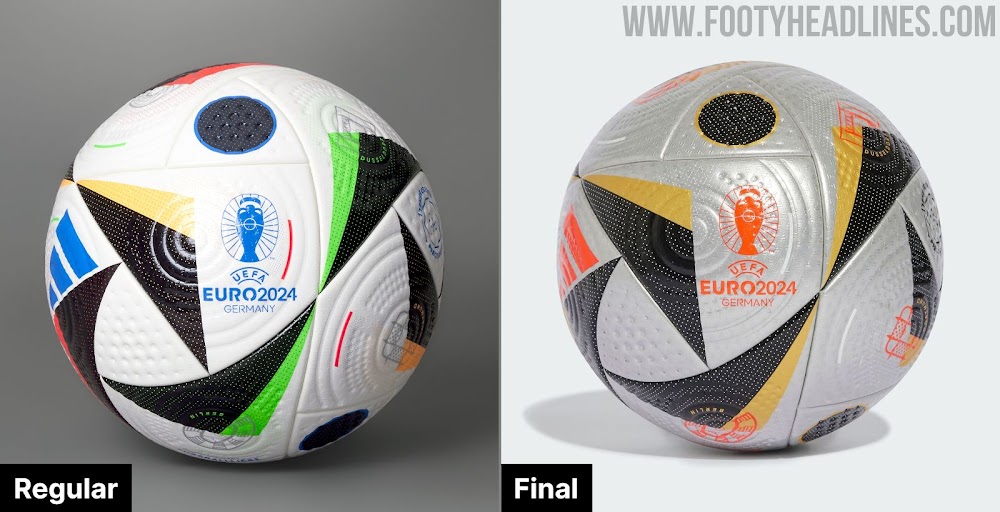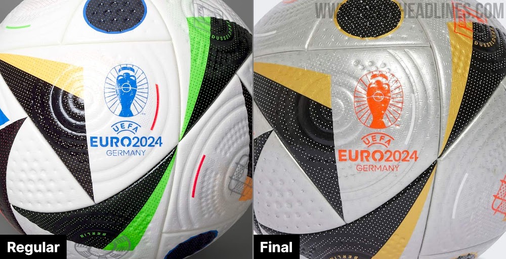 The Euro 2024 final ball has a simpler colorway than the more colorful prototype version.