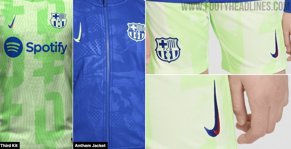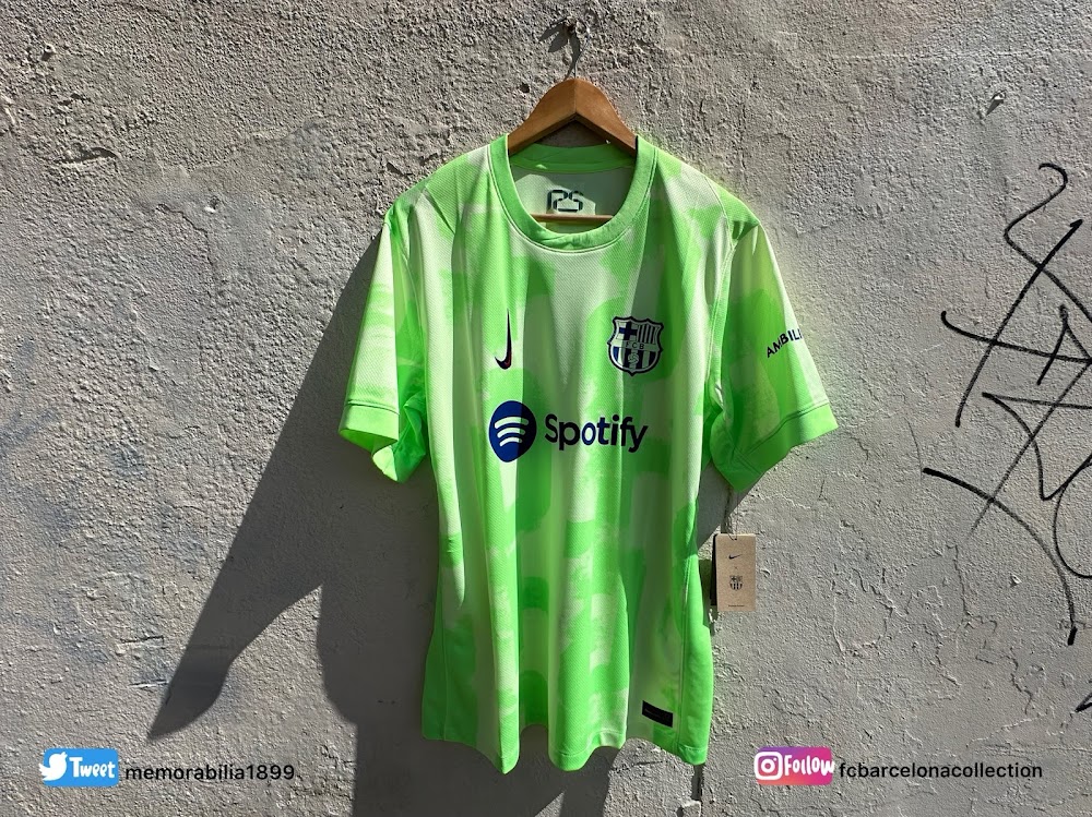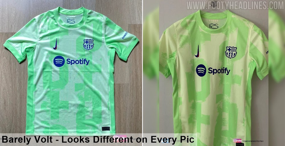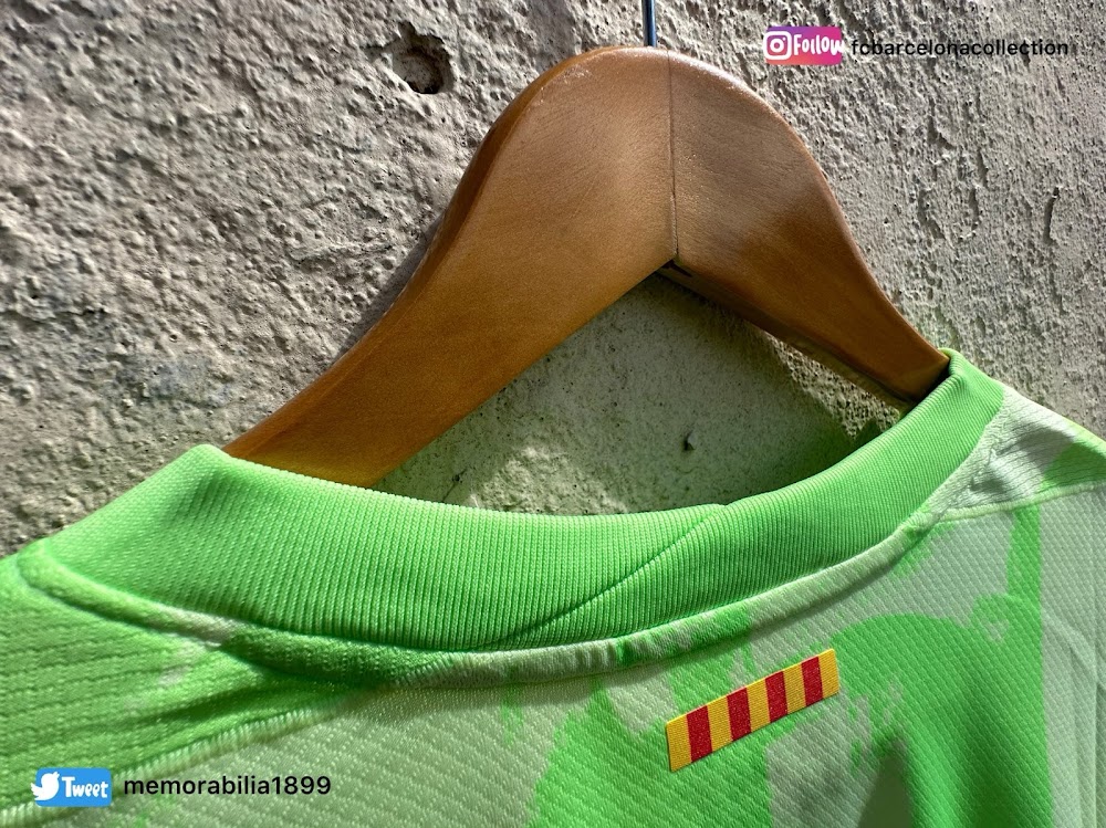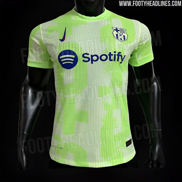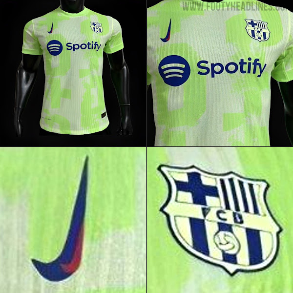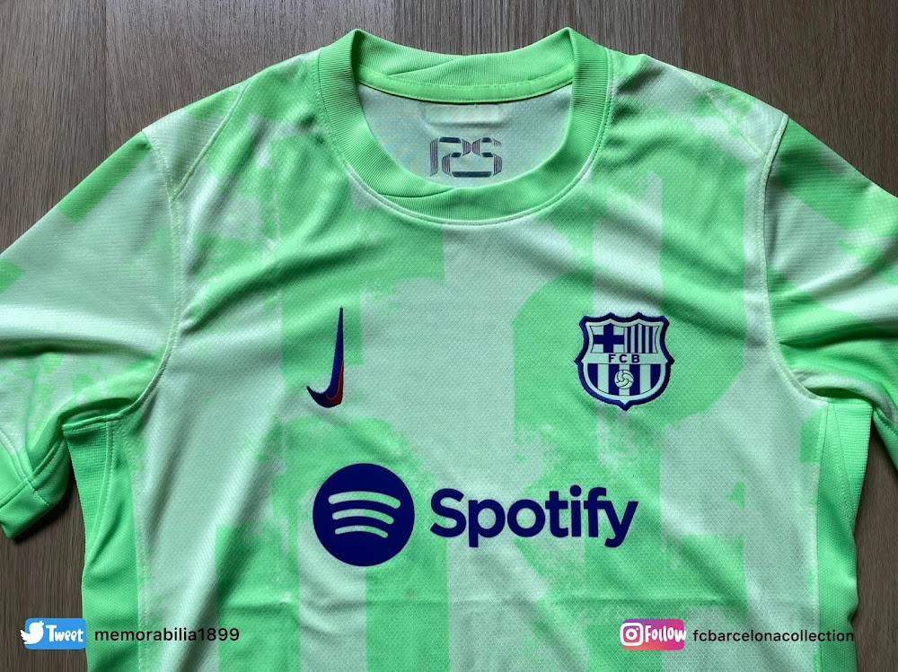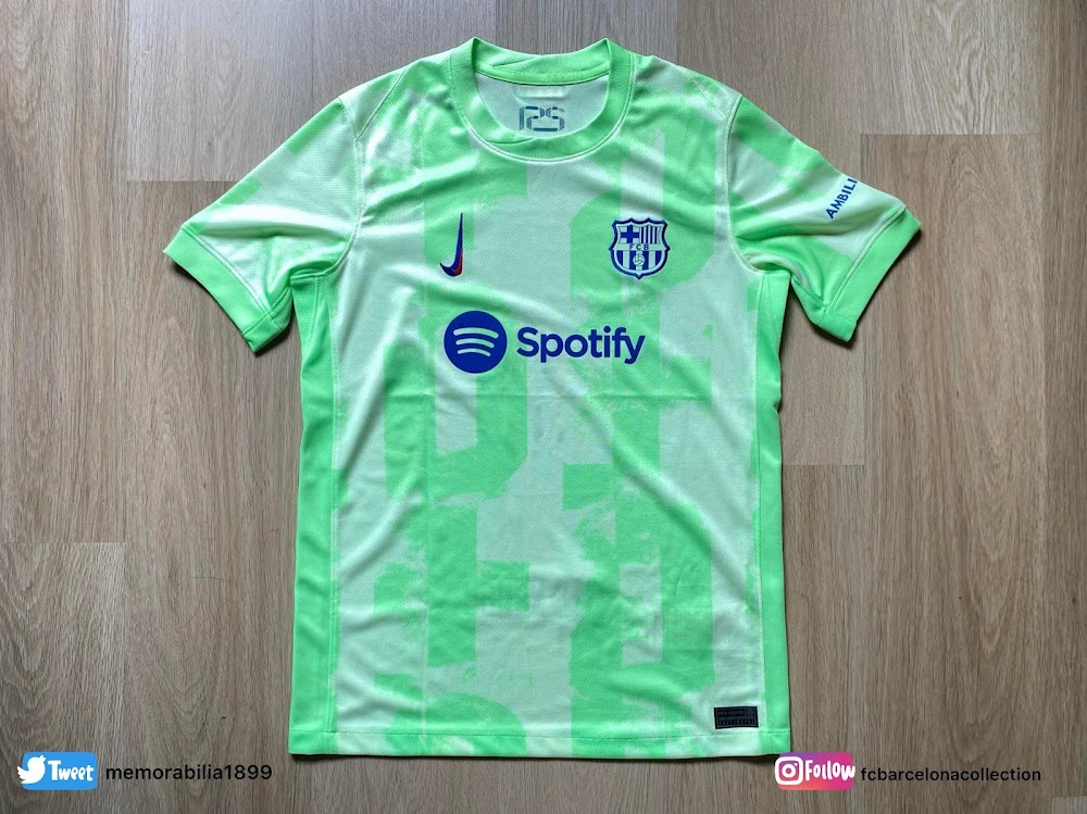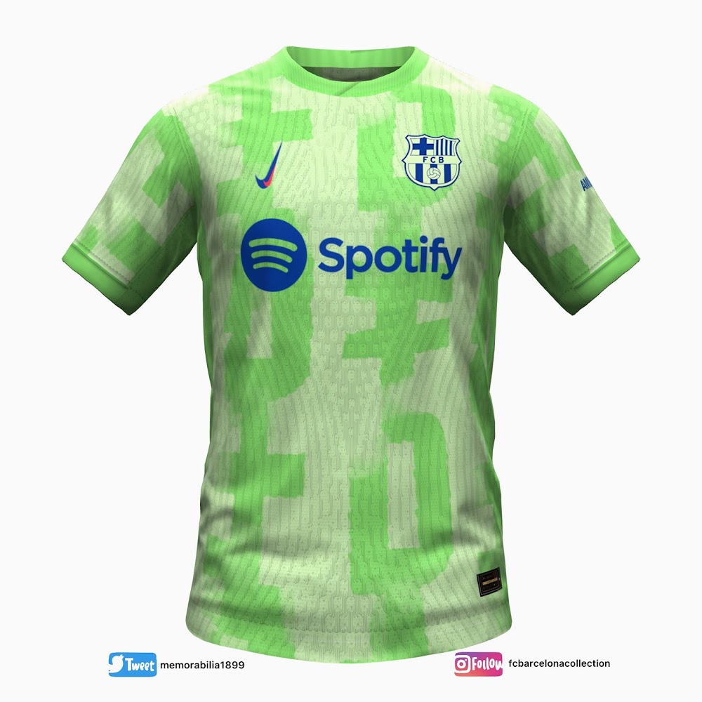 Update: Nine new pictures of the Nike Barcelona 2024-2025 third kit were shared by Barcelona shirt collector @memorabilia1899. The kit is mainly "Barely Volt" - the color is hard for cameras to catch correctly; it is the light variant of Nike's famous Volt color. Some of the pictures are too bluish.