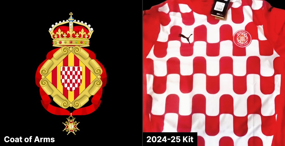 The design is remarkably similar to the kit of hockey Girona Club Hoquei, who also got inspired by the city coat of arms.