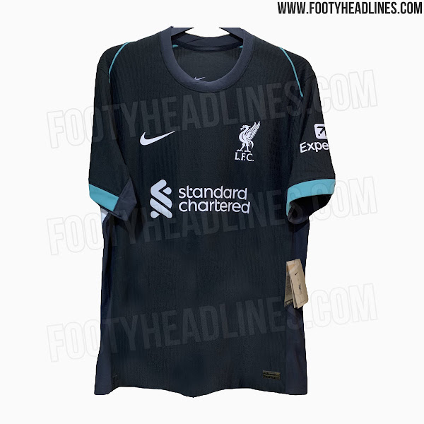 Update: Thanks to Liverpool fan and LFC shirt expert @KB2X, we get an early look at both the replica and authentic version of the Liverpool 24-25 away kit. The colors are a bit too dark and bluish due to the setting, but both are genuine Nike products.