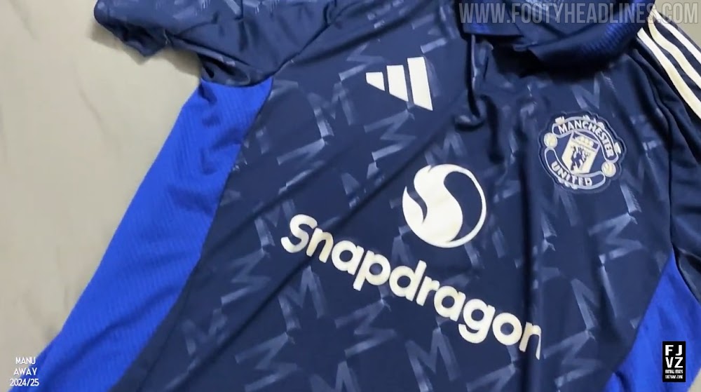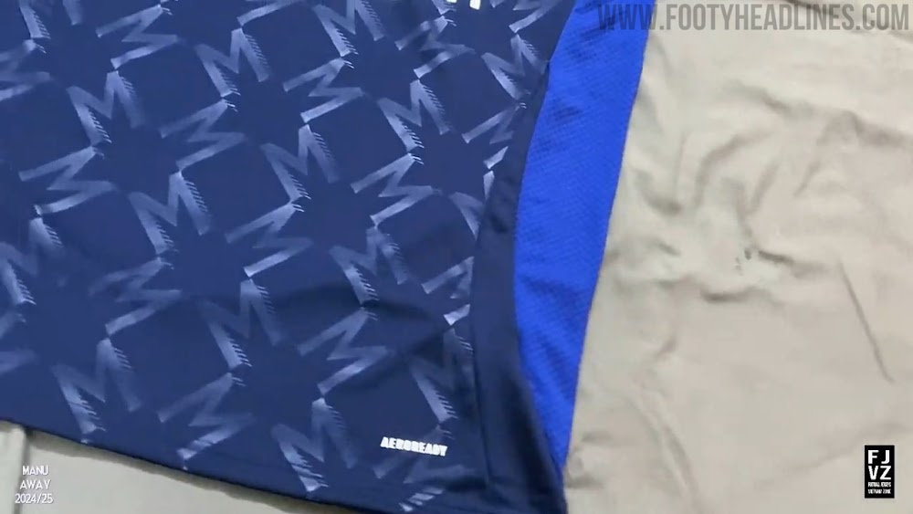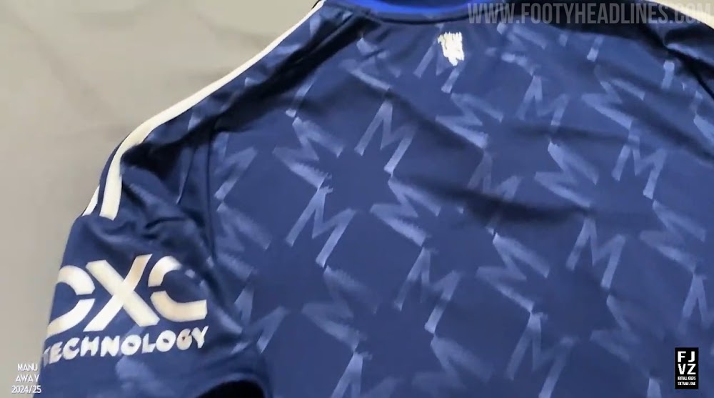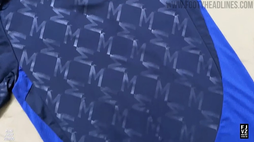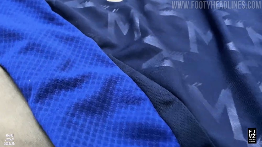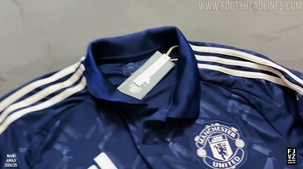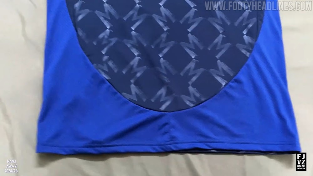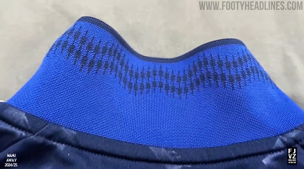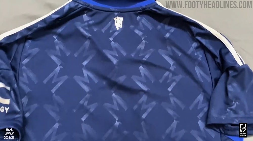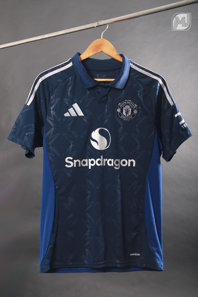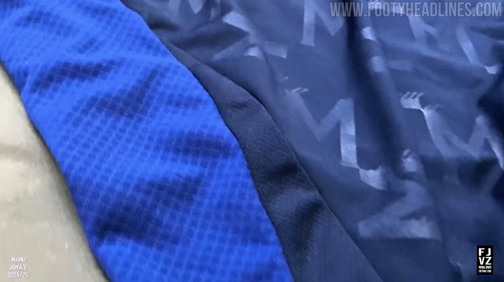 Update: Six fantastic pictures of the Adidas Manchester United 24-25 away shirt have been shared by football kit channel @jerseyreview. They greatly show off the pattern and the different shades of blue the shirt features.
