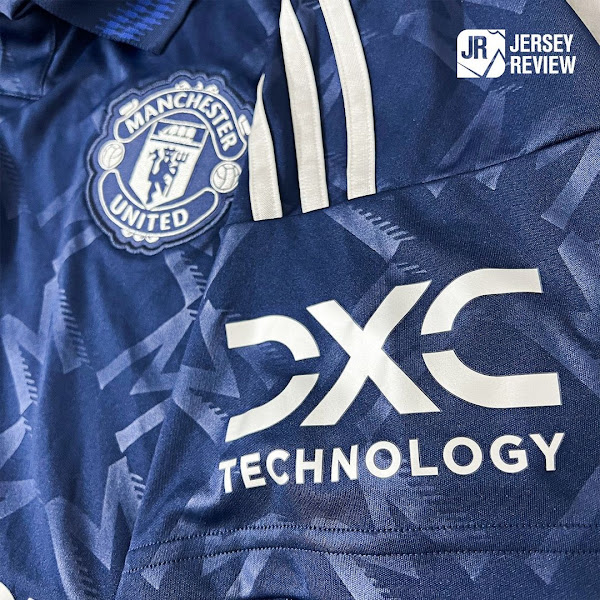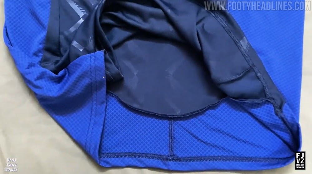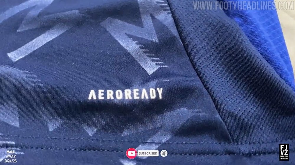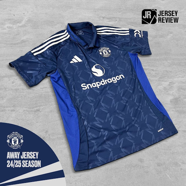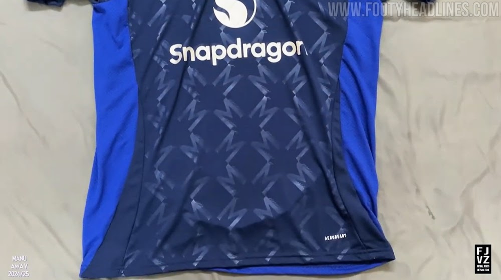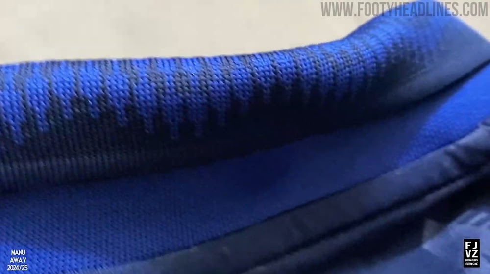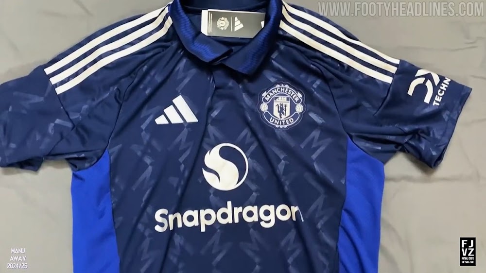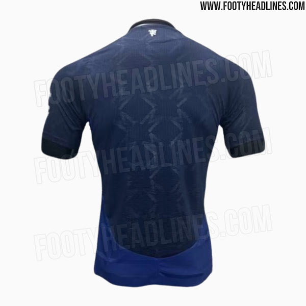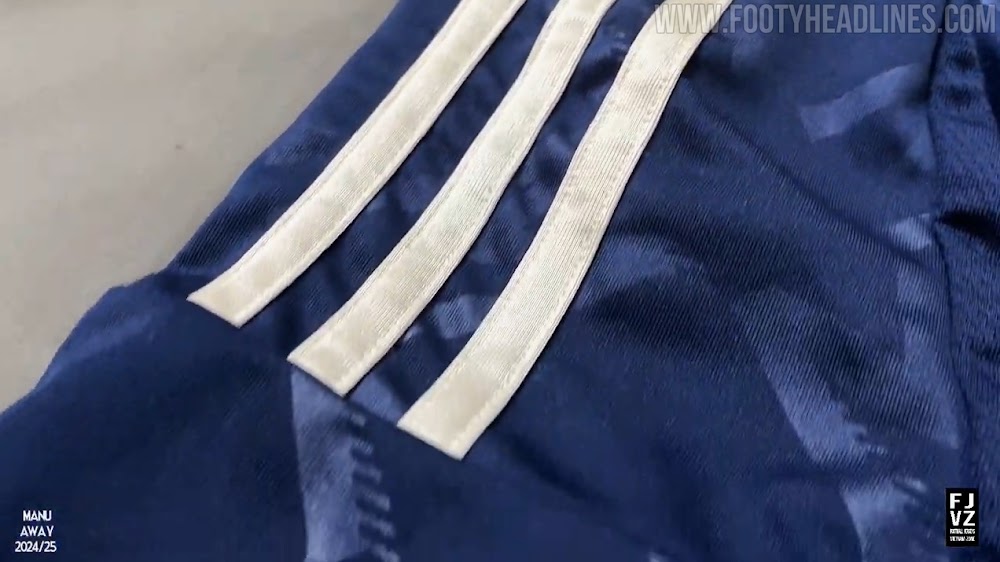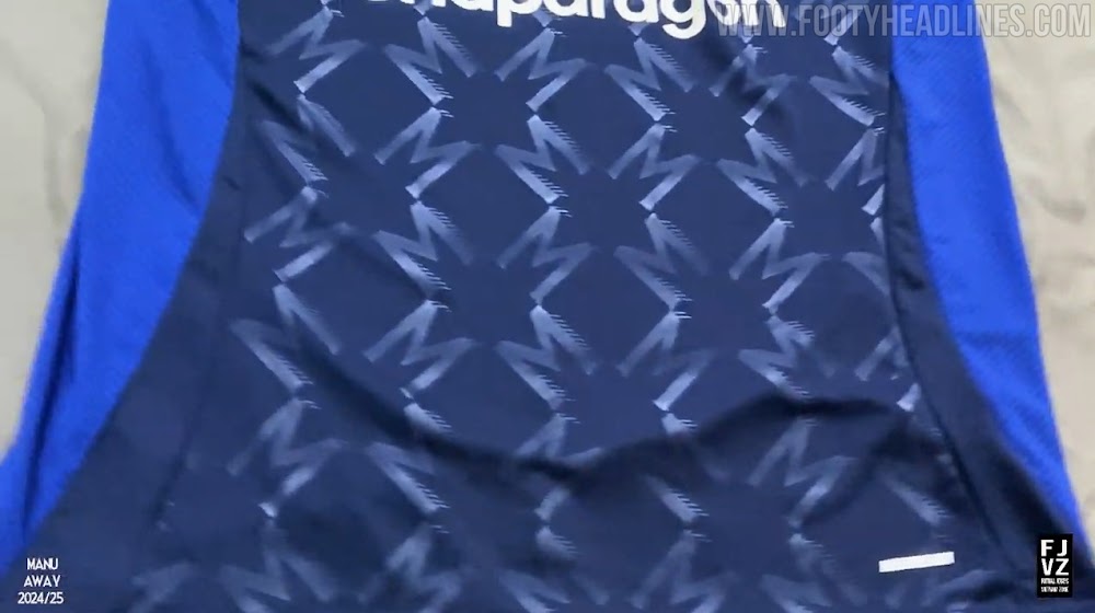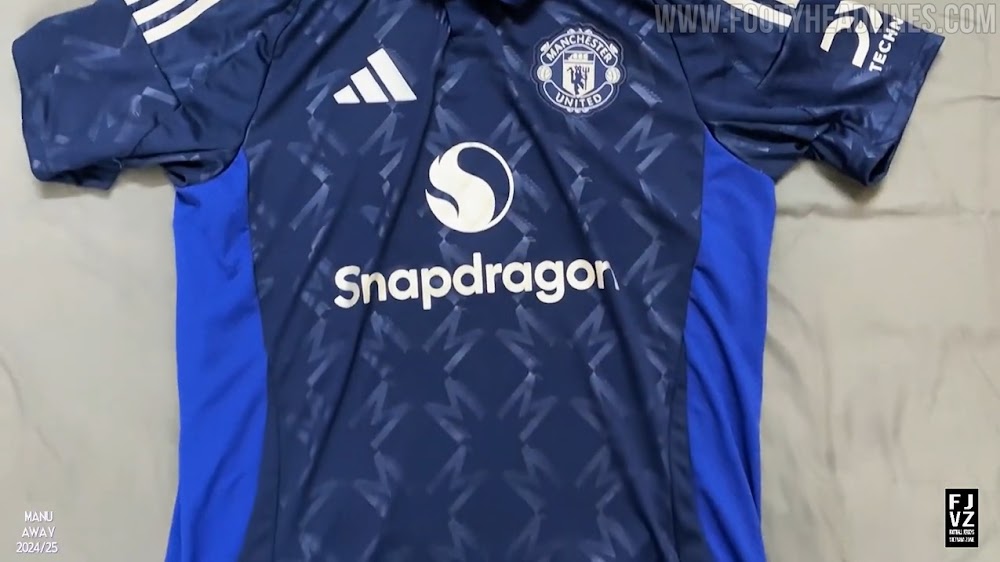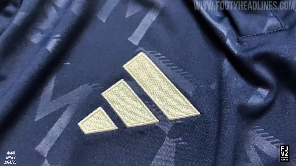 Update: Six fantastic pictures of the Adidas Manchester United 24-25 away shirt have been shared by football kit channel @jerseyreview. They greatly show off the pattern and the different shades of blue the shirt features.