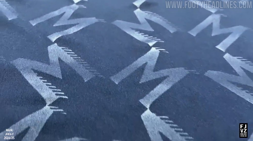 The Manchester United 24-25 away kit features a zig-zag motif on the front, made up of the letter M.