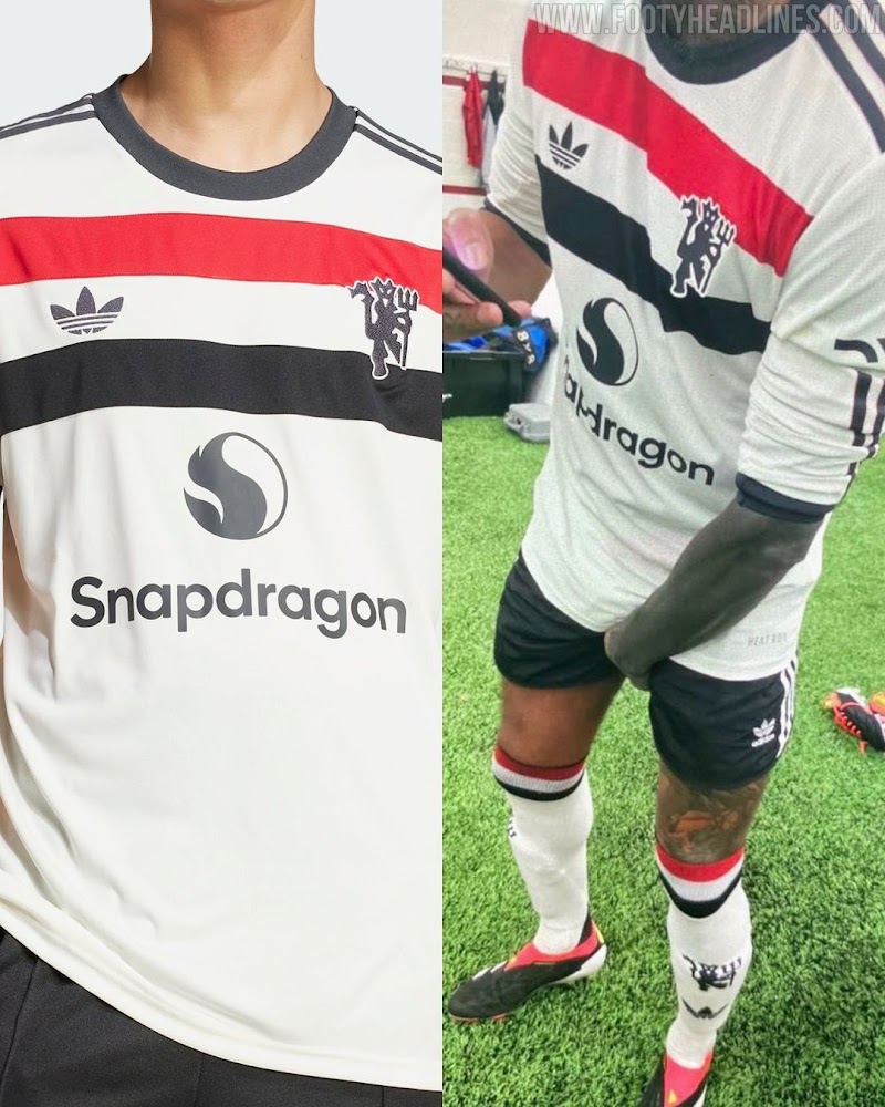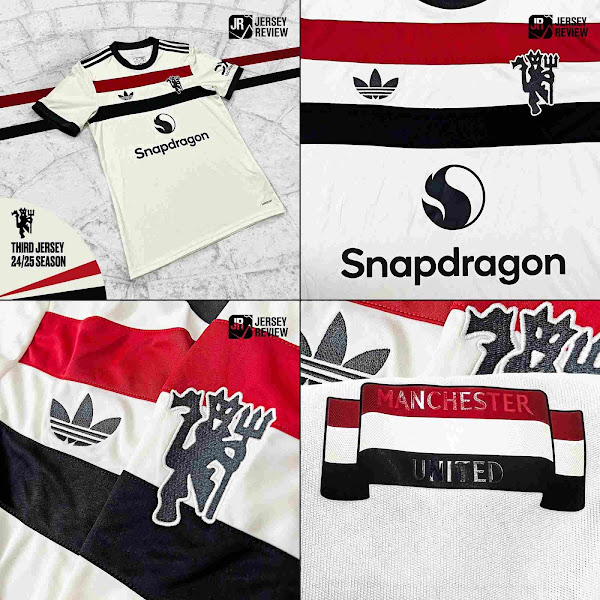The new Adidas Manchester United 24-25 third football jersey features an off-white main color. Like all other Elite team third kits, it comes with the Trefoil logo.