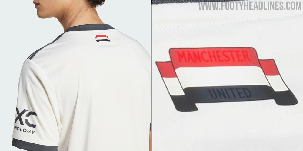 Carbon is used for all logos. On the back is a tricolor flag with a subtle Manchester United lettering.