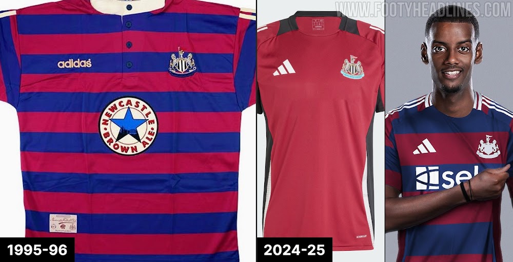 Adidas uses its modern logo for the Newcastle United 2024-25 away kit and not the text-only logo from 1995-1996.