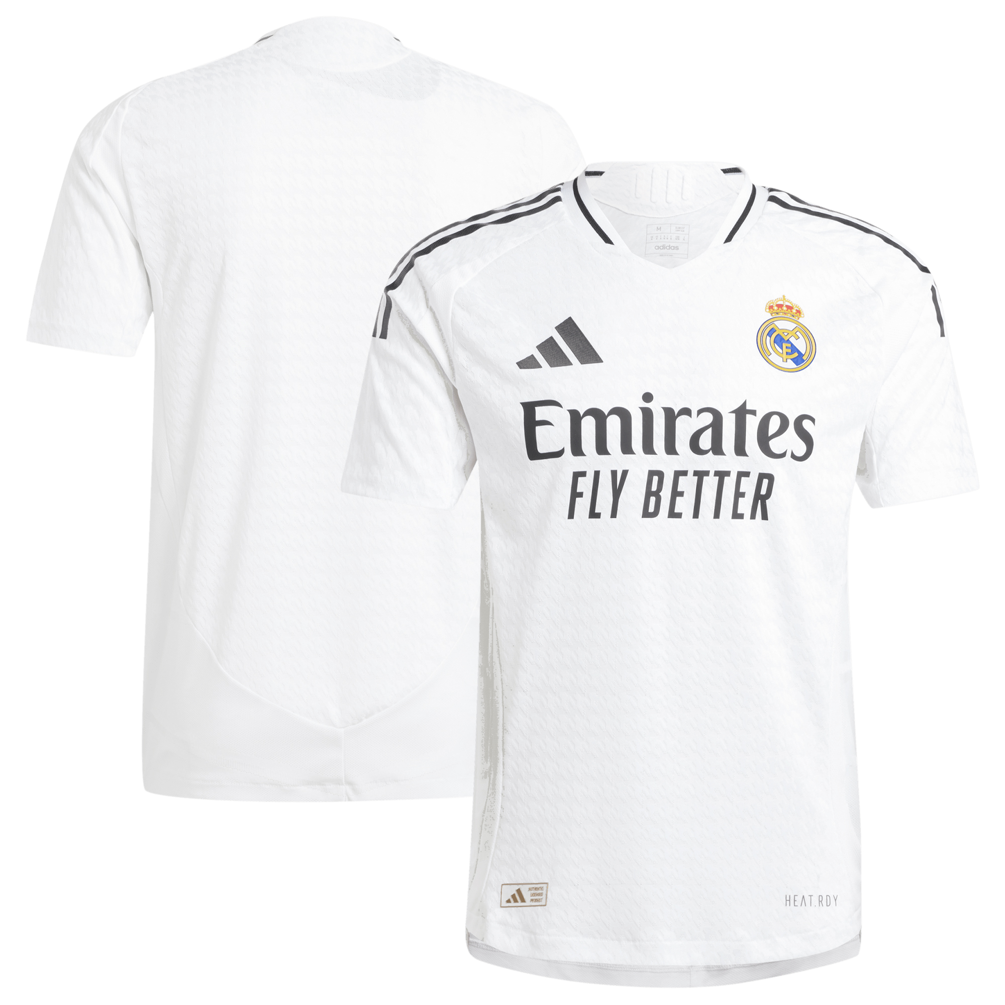 This picture shows the Real Madrid 2024-25 home jersey, made by Adidas.