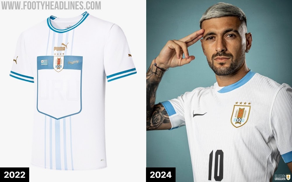 Made by Nike. What's your opinion on Uruguay's 2024 home and away kits? Comment below.