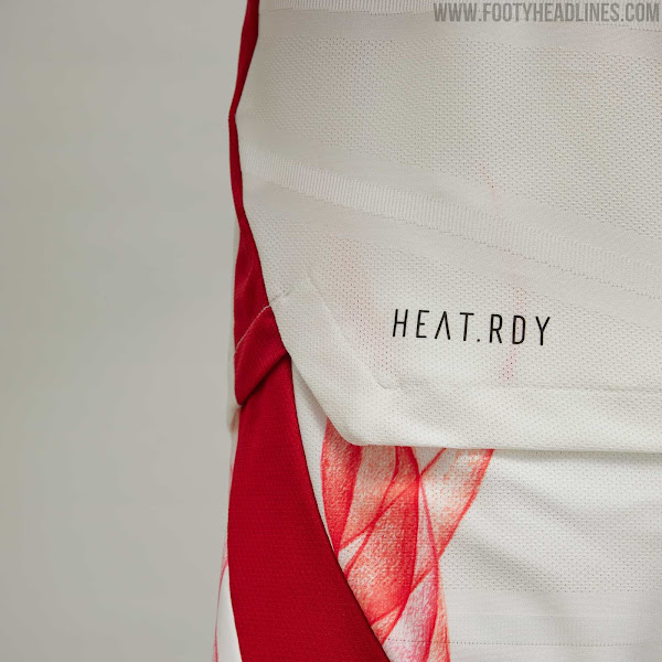The new Japan 2024 away football jersey has a main color of 'Clear White' combined with a red flame graphic that burns on the right side of the shirt.
